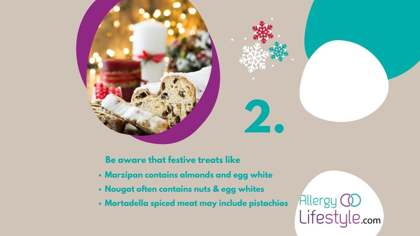 If you deviate from your usual foods over Christmas, It’s important to check for allergens such as:
